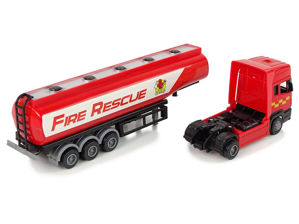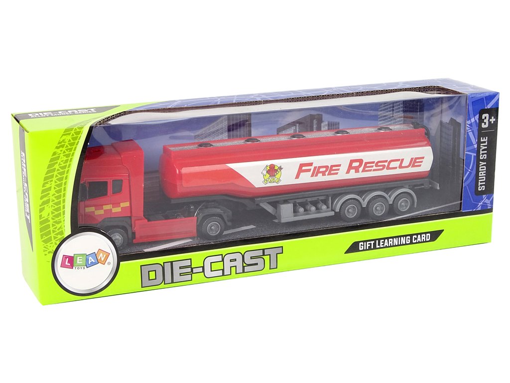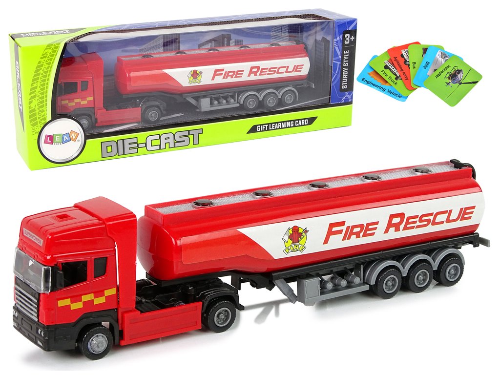 - Egyszerű funkcionalitásának köszönhetően a teherautó minden bizonnyal felkelti az érdeklődést és ösztönzi az önálló játékot, a jármű kis méreteinek köszönhetően pedig a gyermek magával vihet egy ilyen autót óvodába, orvoshoz vagy családi kirándulásra. Úgy néz ki, mint egy igazi hasonmása, amely az úton közlekedik, és minden kis gyűjtő bővítheti gyűjteményét. Az összszín piros, fehér FIRE RESCUE felirattal. A tank oldalra fordítható, így bőven van manőverezhetősége.