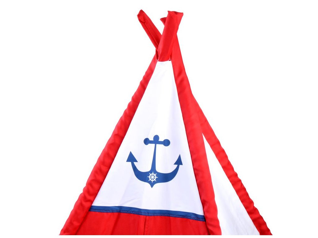 Dětský stan Teepee s kotvou v mořském stylu okouzlí každé dítě. Děti rády tají tajemství, a tento stan bude ideálním místem pro skrývání a ukládání pokladů. Stan na hraní je vhodný do pokoje i zahrady, vyrobený z materiálu snadno omyvatelného a trubky jsou z plastu.